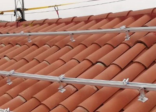 Esta es la solución más económica minimizando el peso de la estructura sobre la cubierta y simplificando el montaje, estructura de Aluminio. Minimiza al máximo el efecto del viento sobre la instalación, especialmente indicado para cubiertas de chapa y panel sándwich.